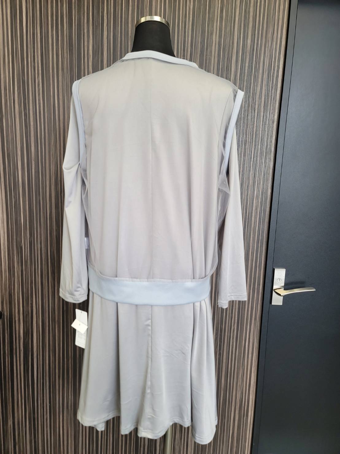 Size F カラー カーキ グレー 透け感を楽しめるパワーネットベストに、シンプルデザインのワンピース。